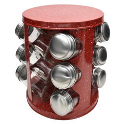 Borcane pentru condimente pe suport Oliver Voltz V51217A12, 12 buc. borcane, suport metalic, marmura rosie