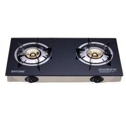 Двоен газов котлон Ertone ERT-MN 202NG, Пиезоелектрическо запалване, Топлоустойчив стъклен плот, Черен