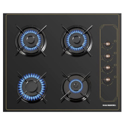 Plita incorporabila Hausberg HB-575RST, Gaz, 4 arzatoare, El. aprindere, negru