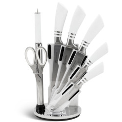 Set ascutitor de cutite si foarfece Edenberg EB-906, 8 bucati, Stand, Maner moale, Alb/otel inoxidabil