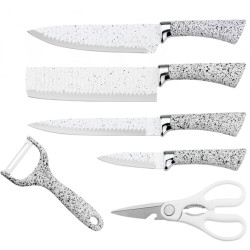 Set de cutite HausRoland H-009, 6 piese, Finisaj marmura, Cutie, Alb