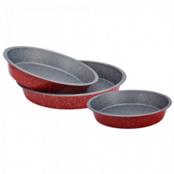 Set tăvi rotunde Rosberg Premium RP51222RR3, 3 buc, 24/28/32 cm, finisaj marmură, roșu